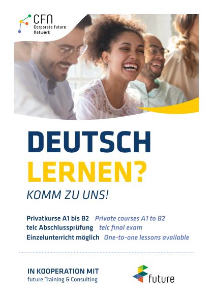 Die Corporate Future Network (CFN) gGmbH ist offiziell zugelassener Träger zur Durchführung von Integrationskursen und Kursen der berufsbezogenen Deutschförderung des BAMF sowie zugelassener Träger nach AZAV.